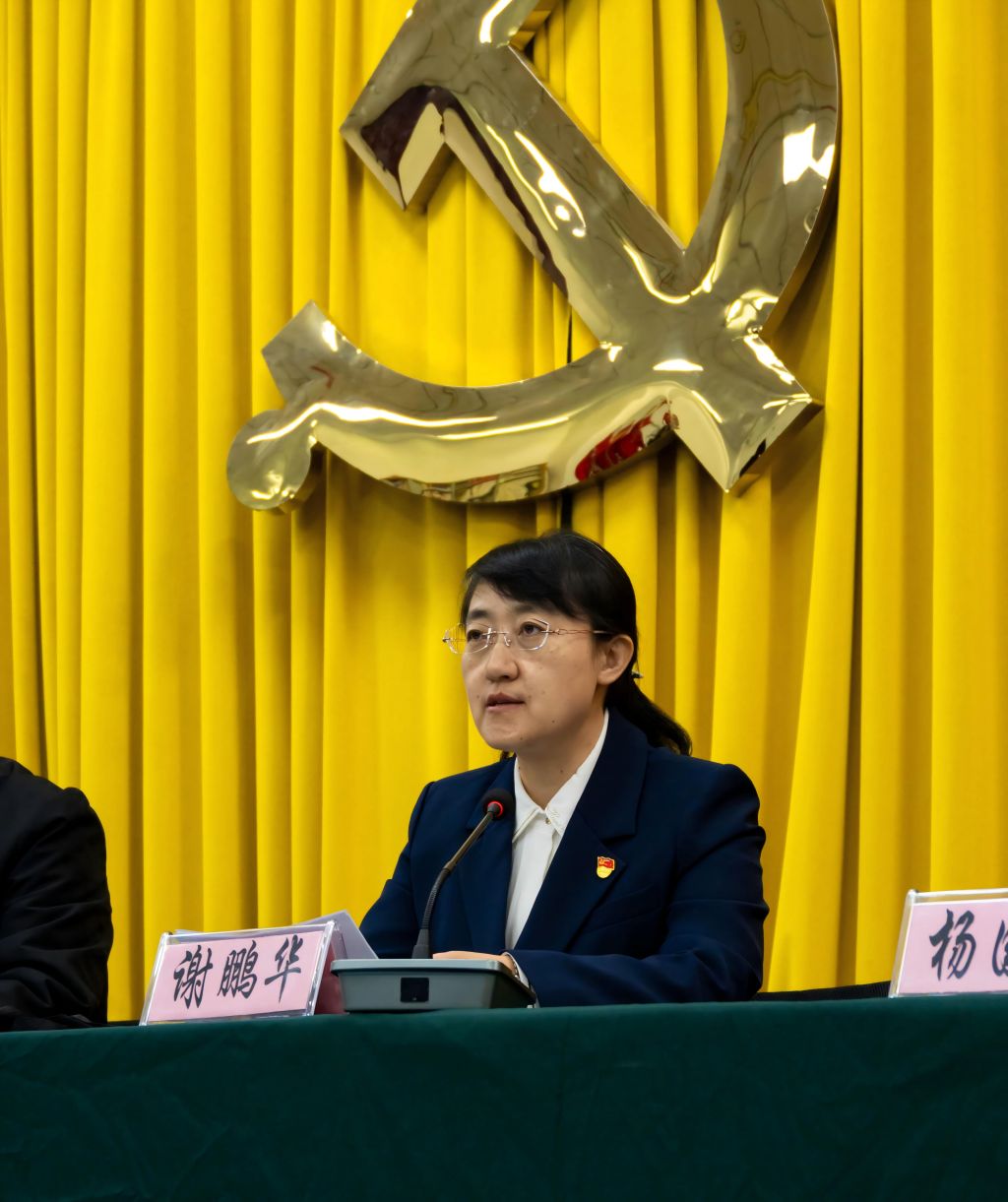 谢鹏华同志代表校党委发表讲话,对大会召开表示热烈祝贺,充分肯定了学院党委过去几年在党的建设、人才培养和内涵发展等方面取得的显著成效,并对学院未来发展提出三点期望:一要坚持以党的全面领导为根本保障,强化政治功能建设;二要深化理论武装,提升领导干部能力;三要培育科学精神,推进“党建+专业发展”深度融合,为学校建设高水平一流大学贡献求实学院力量。